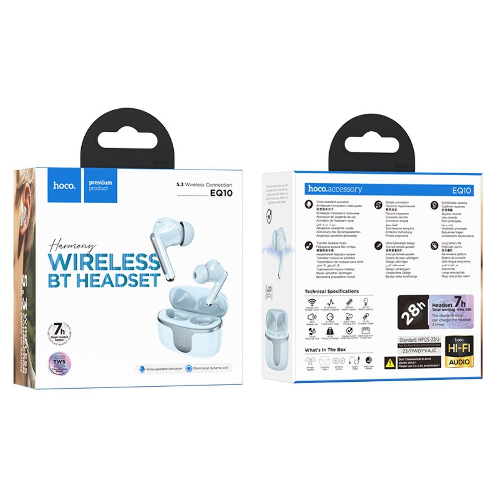 Бездротові TWS навушники Hoco EQ10, вакуумні, BT5.3, 40mAh, 300mAh, 7h, сині
