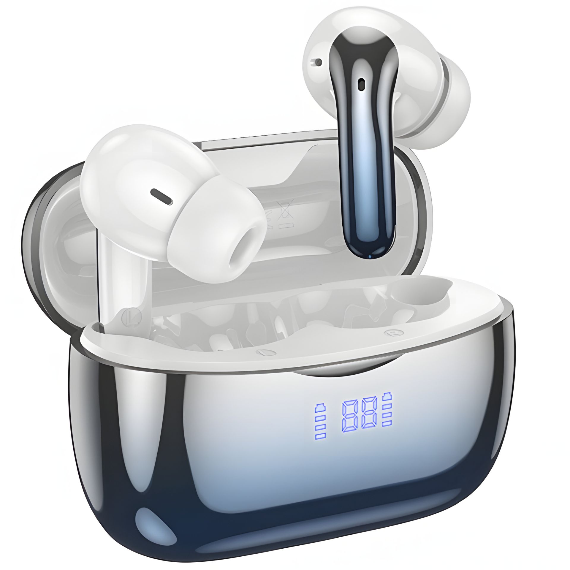 Ергономічна форма навушників забезпечує надійну посадку та комфорт навіть при тривалому використанні, а компактний зарядний кейс з градієнтним покриттям не тільки захищає гарнітуру, а й дозволяє продовжити роботу до кількох підзарядок.