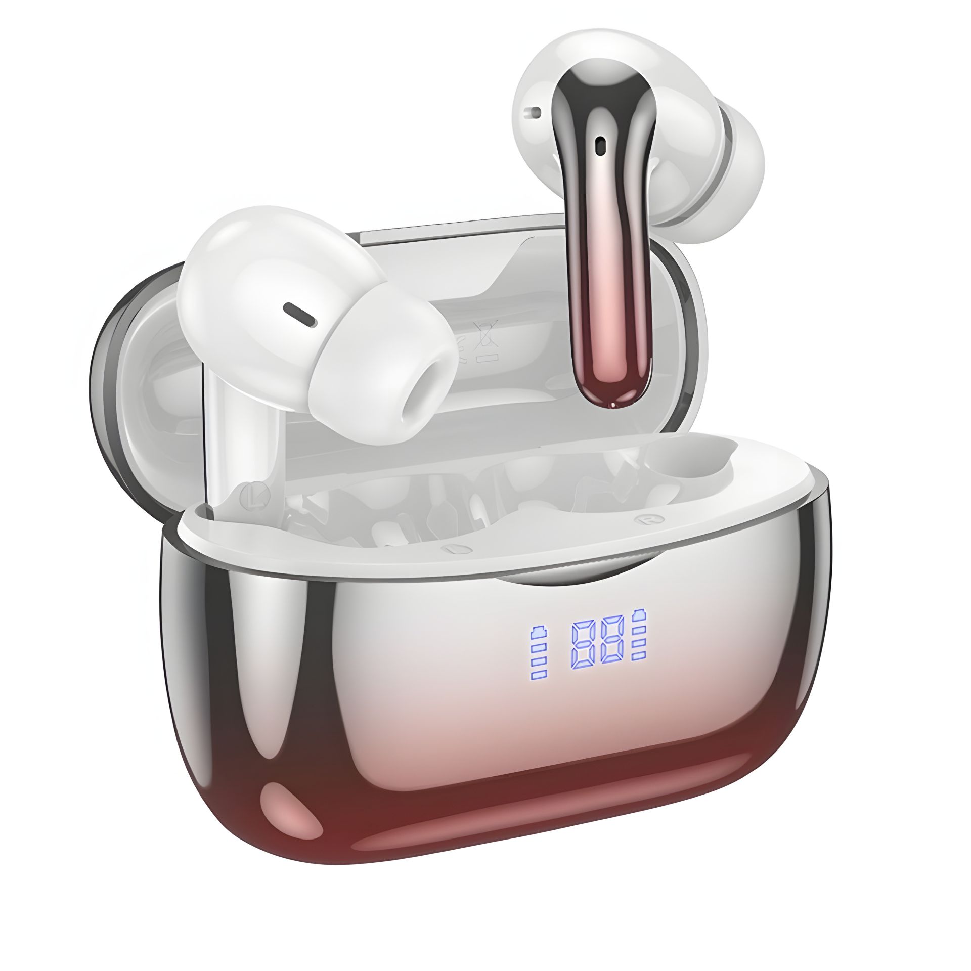 Ергономічна форма навушників забезпечує надійну посадку та комфорт навіть при тривалому використанні, а компактний зарядний кейс з градієнтним покриттям не тільки захищає гарнітуру, а й дозволяє продовжити роботу до кількох підзарядок.