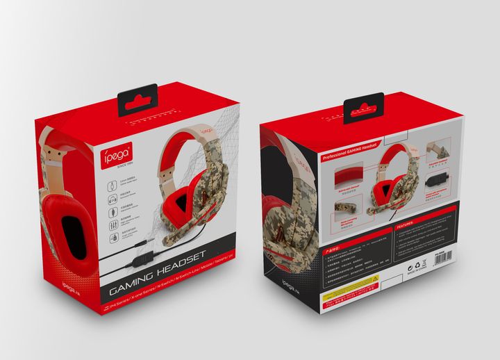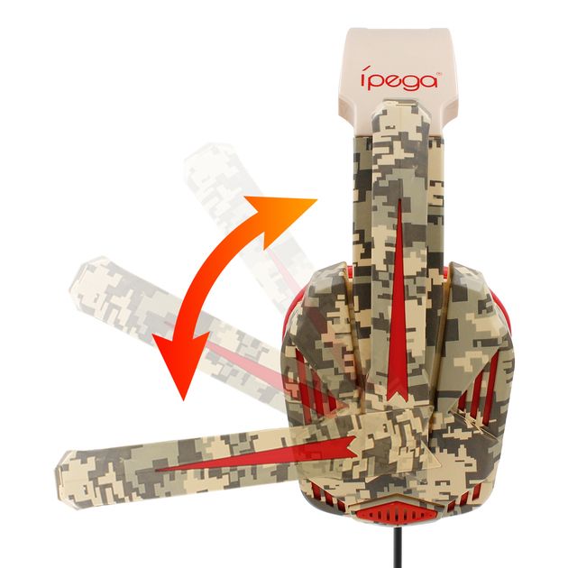 Дротові ігрові навушники iPega Gaming PG-R005, 3.5mm, зменшення шуму, 1.2m, камуфляж-червоні