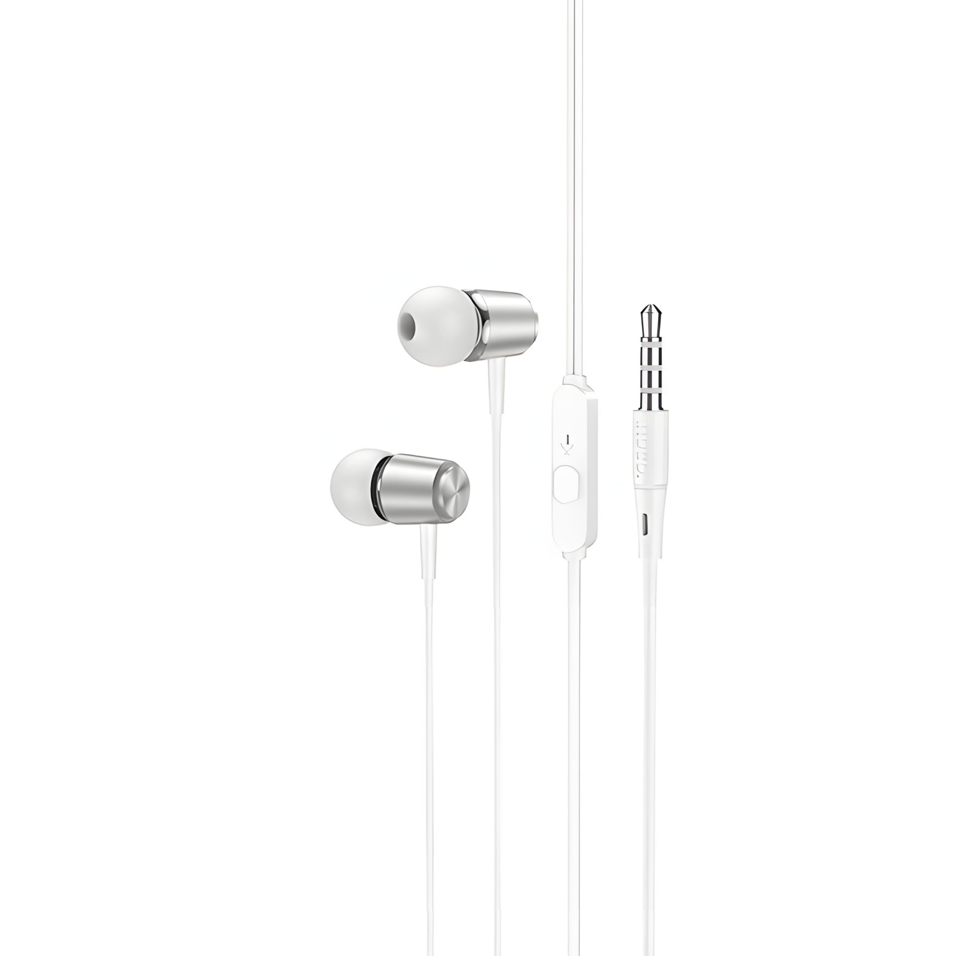 Вакуумні навушники HOCO M108 Spring metal з мікрофоном, сріблясті