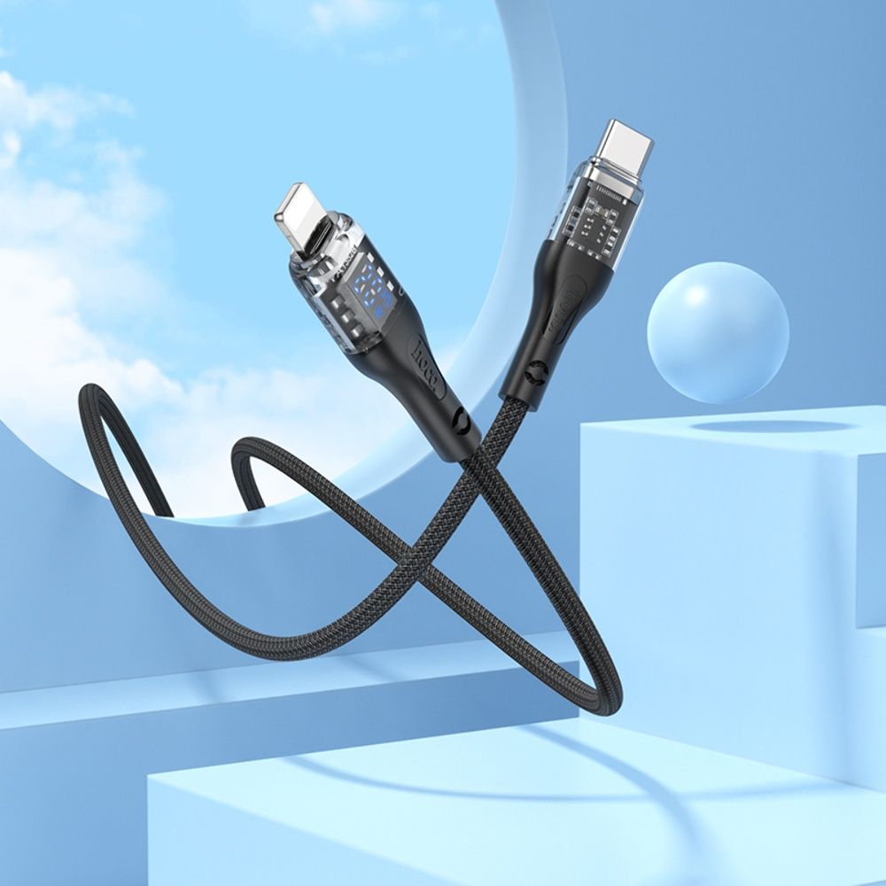 Hoco U115 кабель з дисплеєм, Type-C to Lightning, 1.2m, чорний
