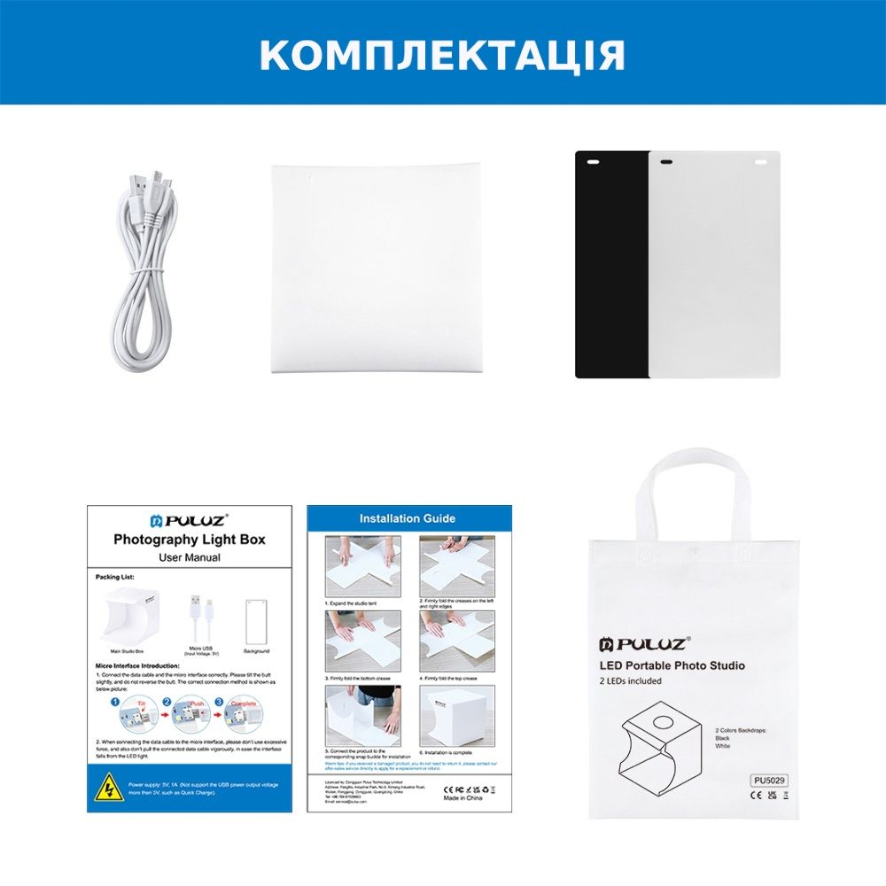 Фотобокс Puluz PU5029 LED (20 х 20 х 20 см) чорний