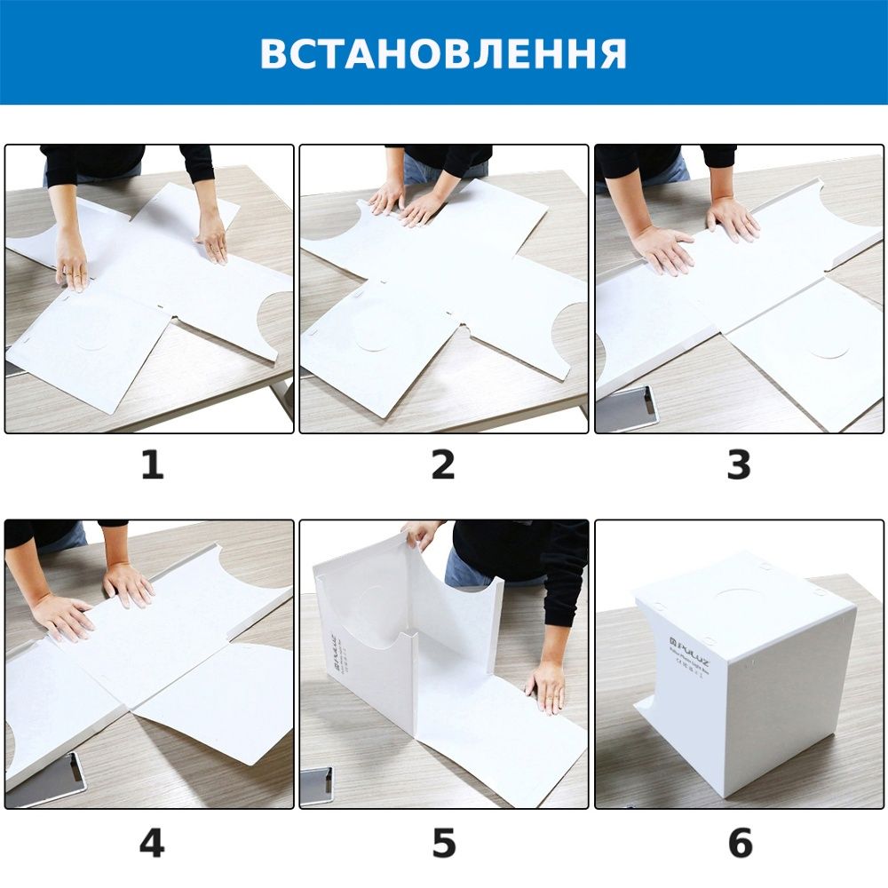 - Формат 20×20×20 см оптимальний для зйомки невеликих предметів, не займаючи багато місця на робочому столі.