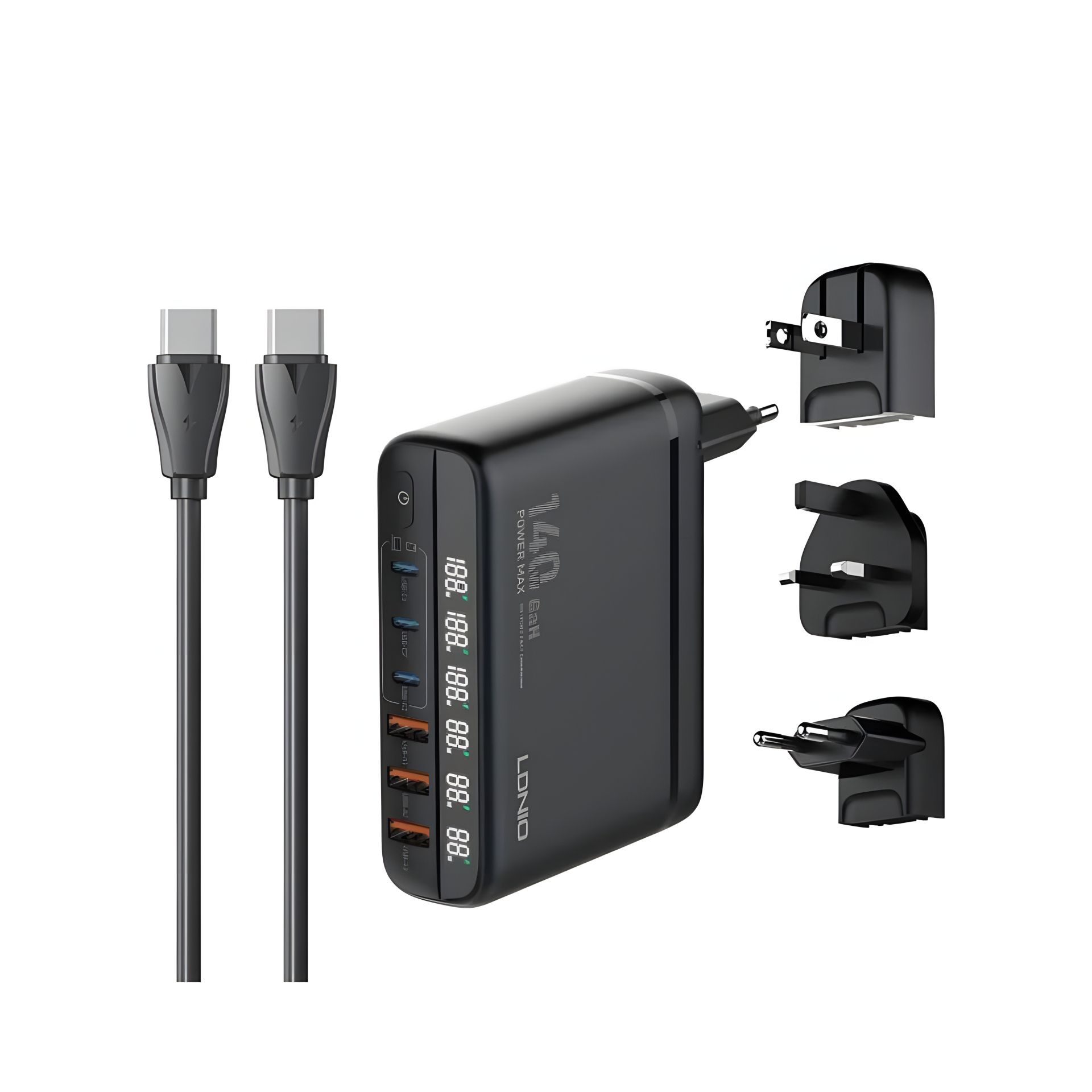 Мережевий зарядний пристрій LDNIO A6140C 140W з LED дисплеєм, чорний
