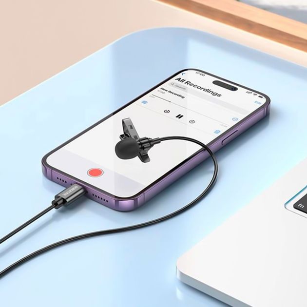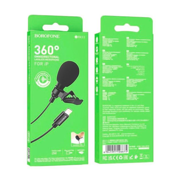 Петличний мікрофон Borofone BFK11 Lightning, 2м, Чорний