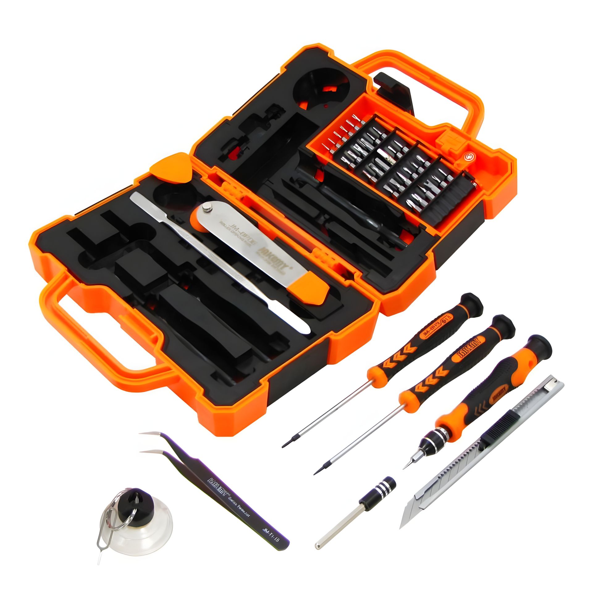 Набір інструментів Jakemy JM-8139 – це професійний комплект для ремонту мобільних телефонів, MP3-плеєрів, ігрових консолей (PSP) та іншої електроніки. Включає широкий асортимент біт та інструментів, необхідних для точних та безпечних робіт.