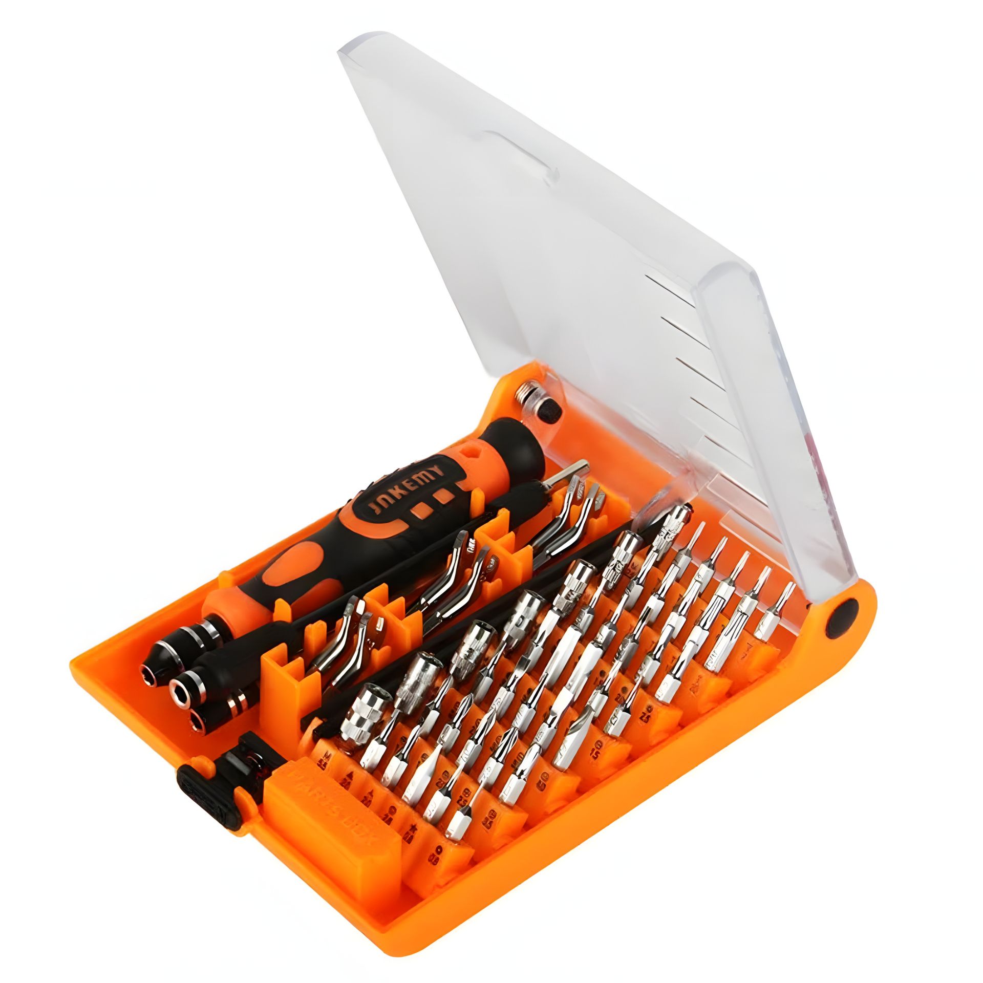 Jakemy JM-8150 – це універсальний набір інструментів, що ідеально підходить для ремонту електронних пристроїв, таких як смартфони, планшети, ноутбуки, комп'ютери, а також побутової техніки та приладів. Набір містить 52 предмети, що забезпечують максимальну зручність та ефективність у роботі.