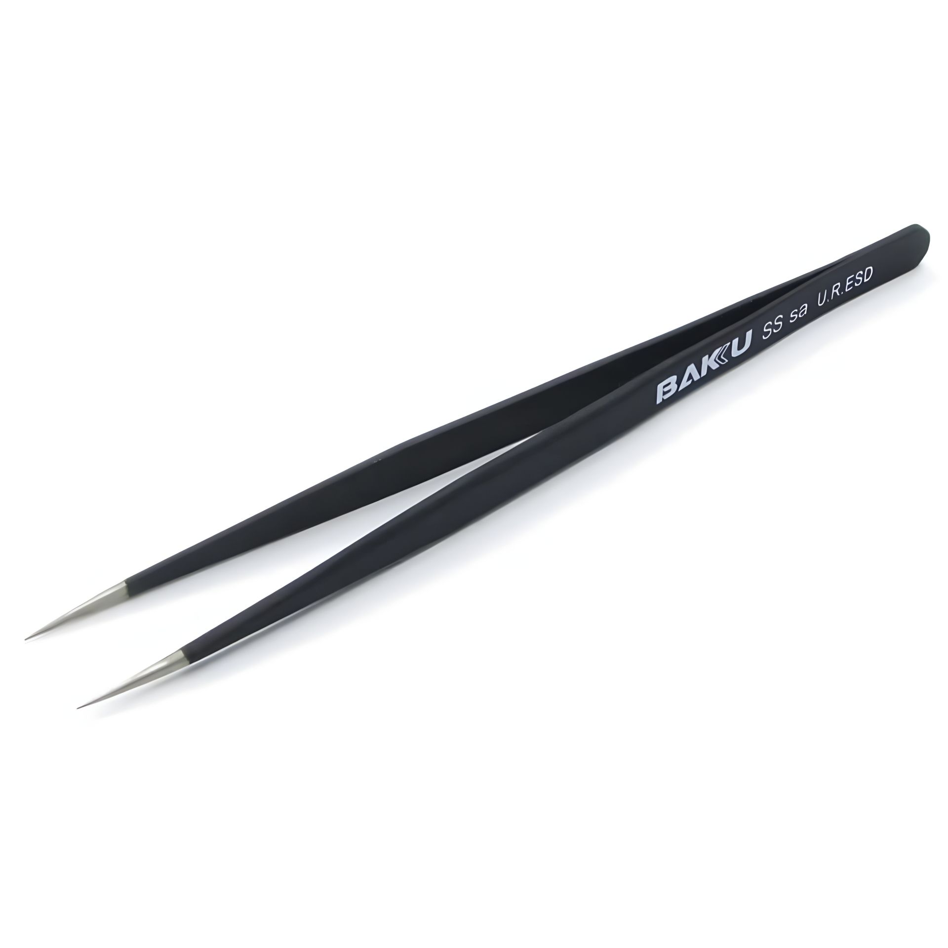 Прямий пінцет Baku A8 SS sa U.R.ESD з чорним антистатичним покриттям
