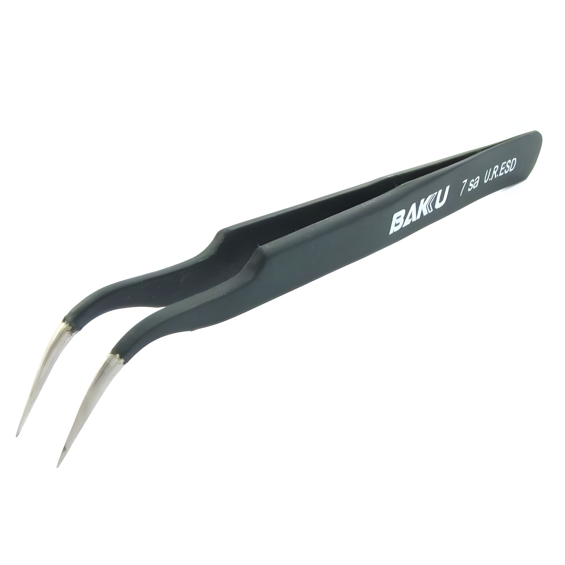 Вигнутий пінцет Baku A8 7 Sa U.R.ESD з чорним антистатичним покриттям