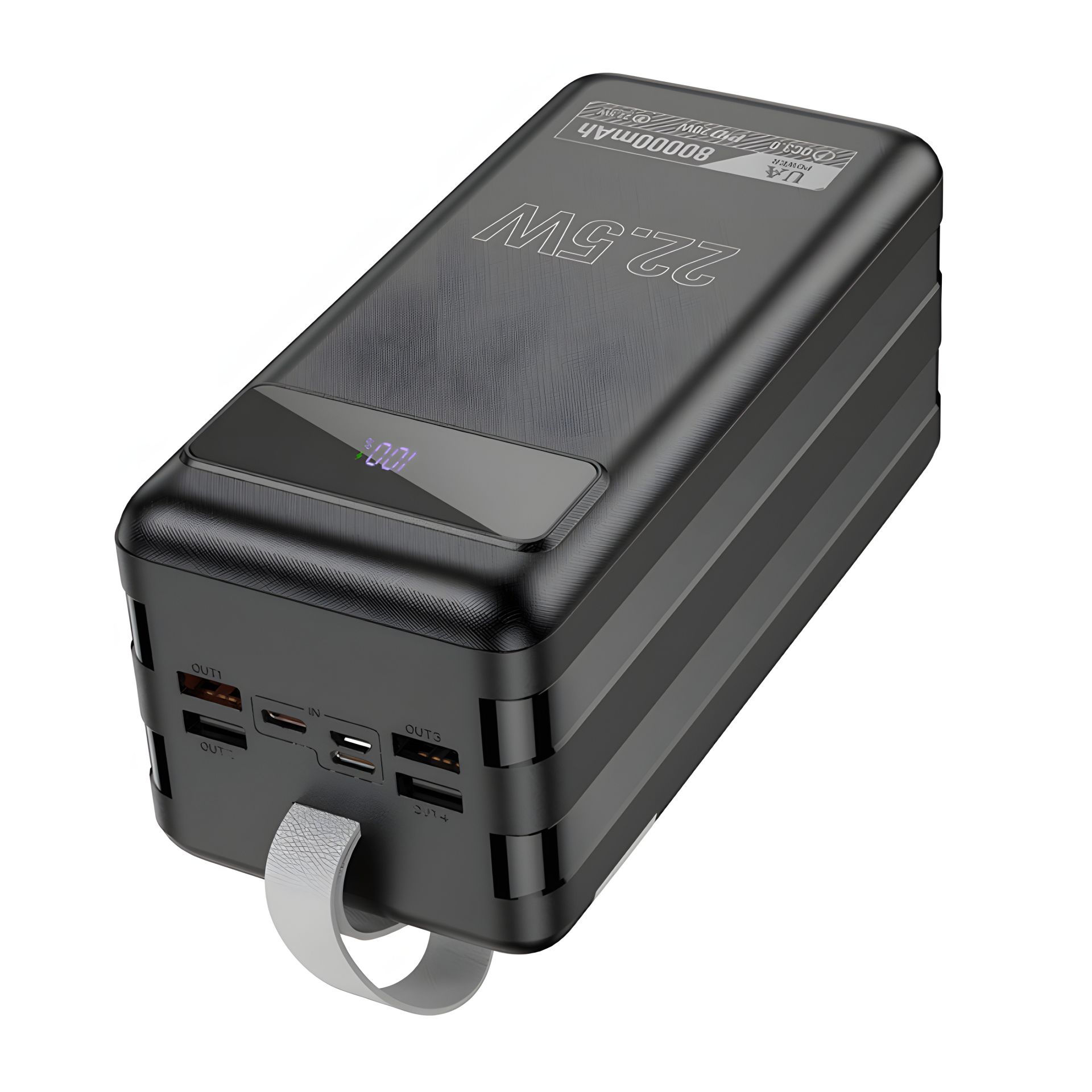 Повербанк HOCO DB50 - це ідеальне рішення для заряджання ваших пристроїв у будь-яких умовах. З ємністю 80 000 mAh та можливістю швидкої зарядки, він стане вашим незамінним помічником у тривалих поїздках, походах та повсякденному житті. Компактний та стильний, цей акумулятор оснащений 4 USB портами та портом Type-C, які дозволяють заряджати декілька пристроїв одночасно. Також у пристрої є яскравий LED-ліхтар і зручний LED дсплей для відображення відсотка заряду, що залишився.