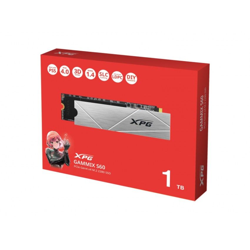 ADATA GAMMIX S60 - це високопродуктивний твердотільний накопичувач формату M.2 з інтерфейсом PCIe Gen4 x4, розроблений для геймерів, ентузіастів та користувачів, яким важлива максимальна швидкість роботи системи. Цей накопичувач забезпечує блискавичне завантаження ігор та програм, високу стабільність та надійність зберігання даних.