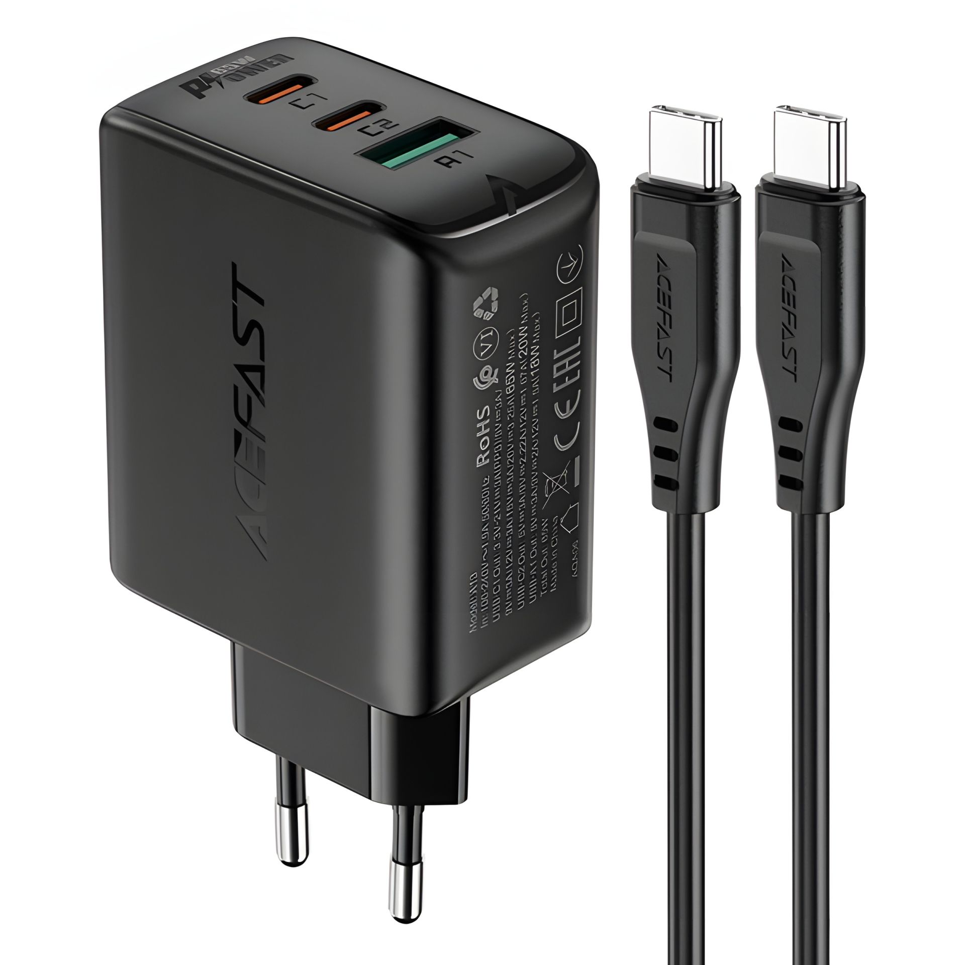 Зарядний пристрій Acefast A13 USB/2 Type-C QC PD 65W чорний + кабель Type-C