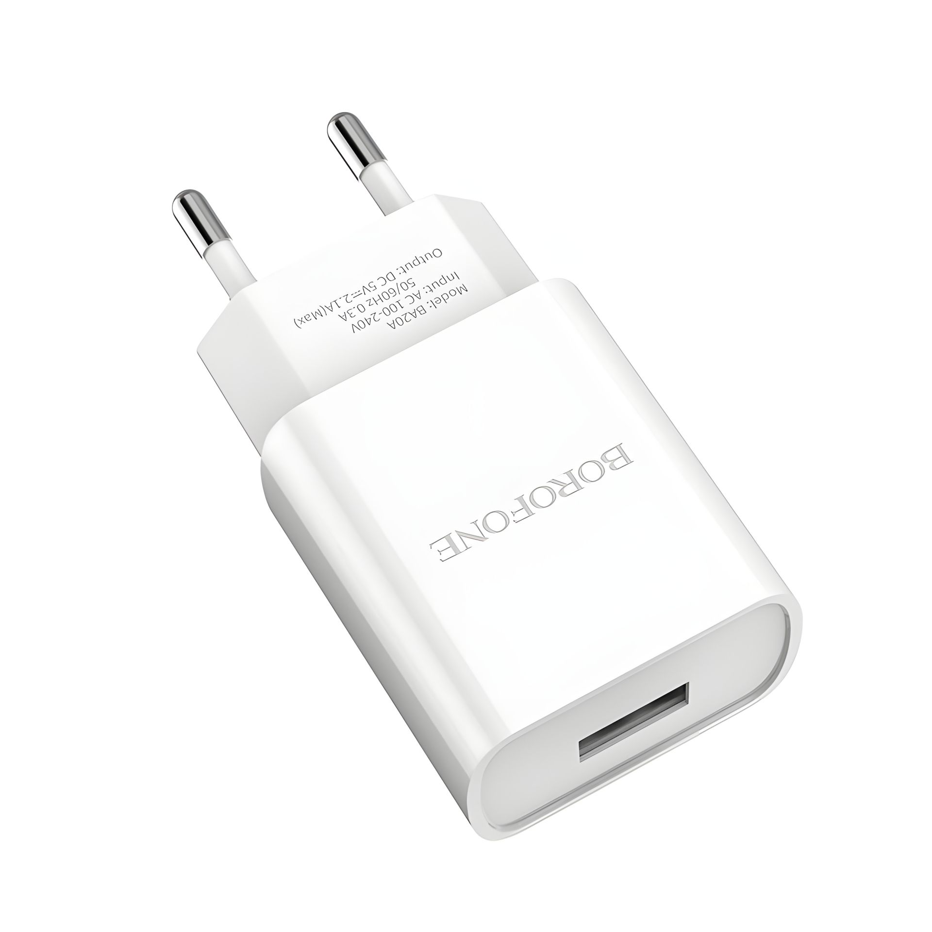 Borofone BA20A зарядний пристрій з кабелем USB to Lightning, 1USB, 2.1A, білий