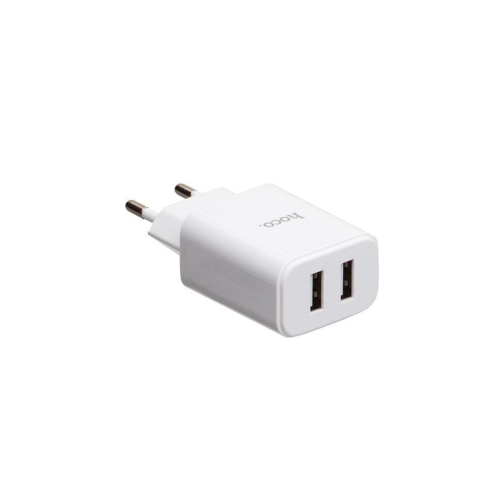 Мережевий зарядний пристрій Hoco C62A з кабелем MicroUSB, 2USB, 2.1A, White
